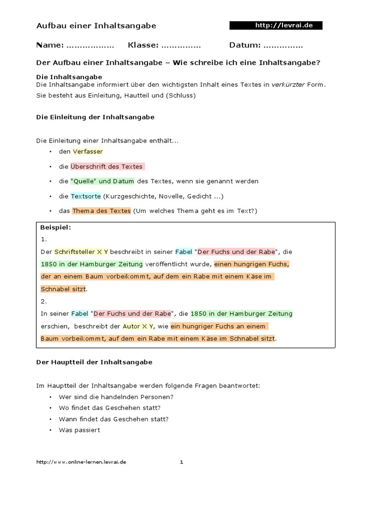 Aufbau Einer Inhaltsangabe Online Lernen Levrai